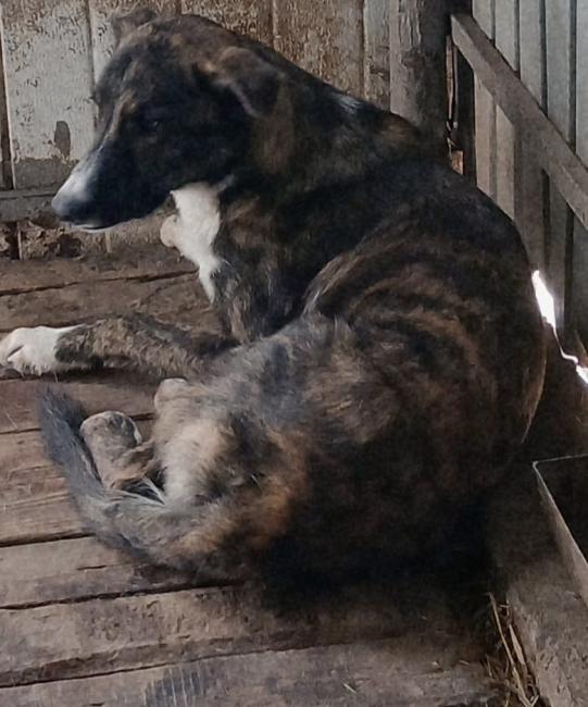 Mascul, 3 ani, culoare negru galben, piept alb, talie mare, stare generală moderată, examen clinic sănătos, număr de identificare 1381.