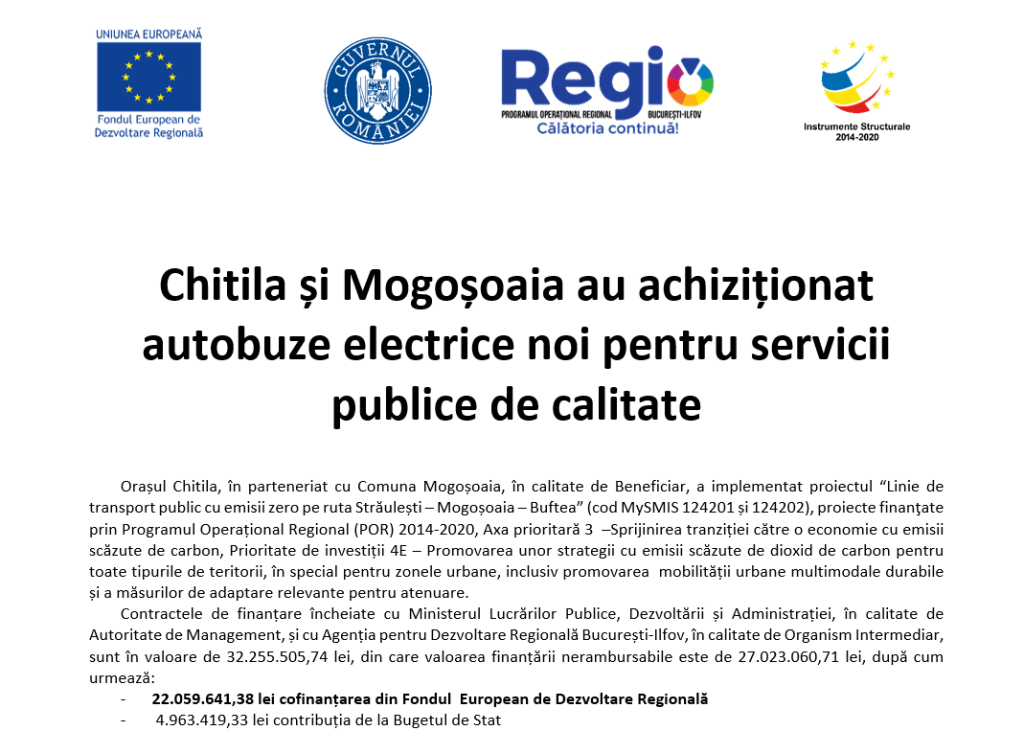ARTICOL DE PRESĂ – Linie de transport public cu emisii zero pe ruta Straulesti – Mogosoaia – Buftea – proiect de baza – ID MySMIS 124201