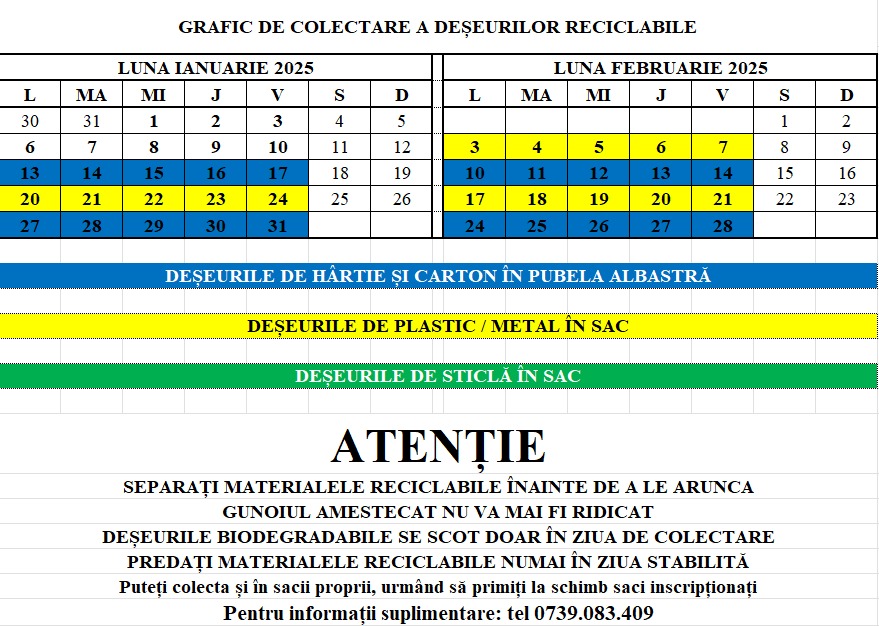 PROGRAM COLECTARE – IANUARIE, FEBRUARIE