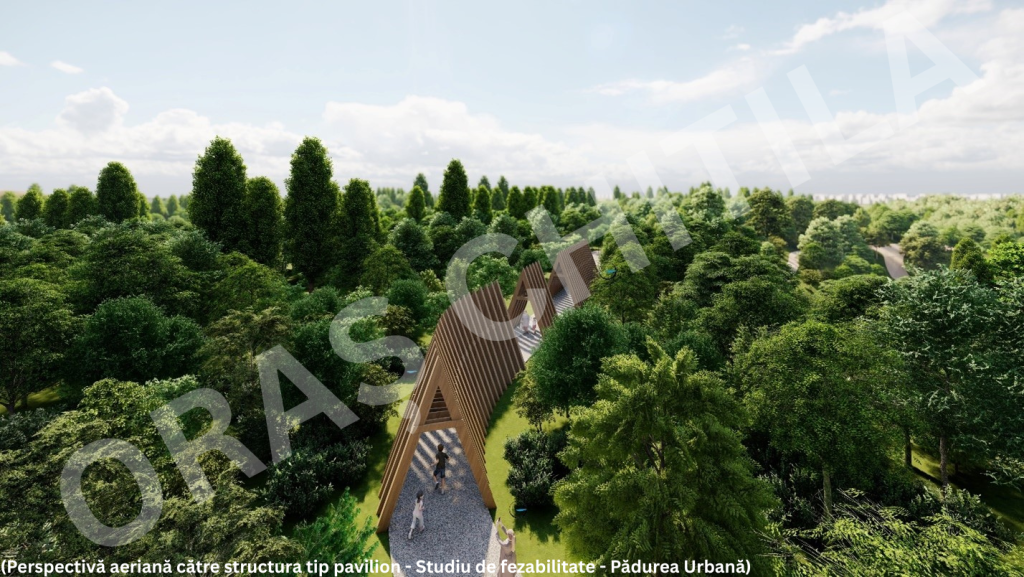 - Suprafețe proiectate: suprafață verde amenajată ≈ 2.297,82 m²; pădure urbană integrată 512,41 m²; suprafață alei ≈ 308,77 m².